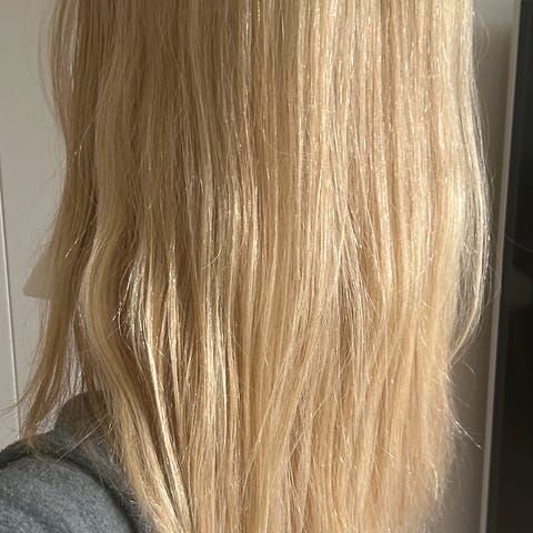 Blond parykk i eget hår. Kan behandles som vanlig hår. Kan sendes mot frakt og forhåndsbetaling 🌟