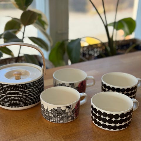 Sjeldne Marimekko kopper. Oiva med bymotiv
