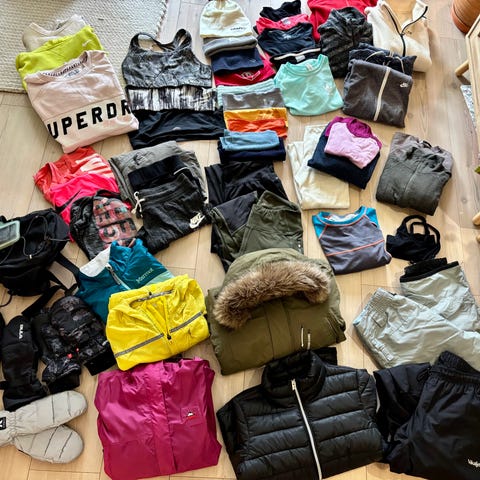 Turklespakke til dame. Nye klær som ikke er brukt. Turjakke fra Move On str S, turbukse fra Move on str M, fleecejakke fra Move On str S, regnjakke fra Move On str S.