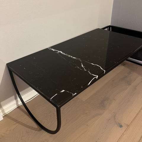 Bolia sofabord i valnøtt. Ramme i rustfritt stål.
