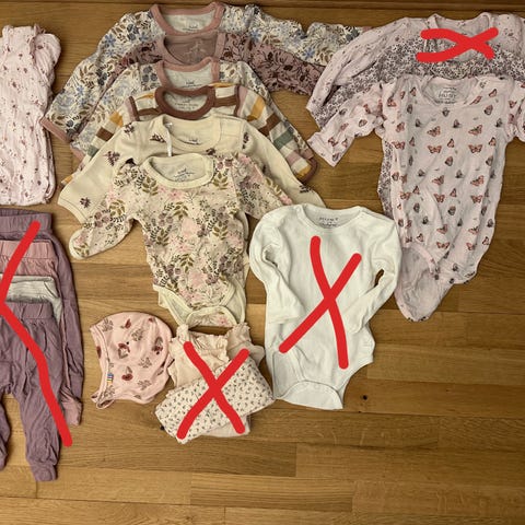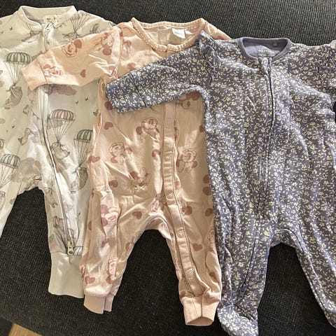 Nydelig sett i ull fra Marmar Copenhagen med body og bukse med fot, størrelse 56. God stretch i dette så dette passer lenge. Veldig fint pointellemønster.
