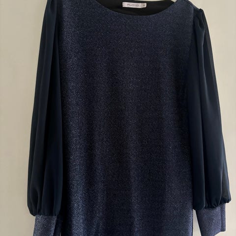 Lekker festbluse i stretchy og komfortabelt glitterstoff.