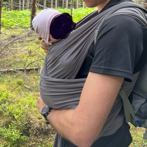 Moonboon bæresjal. Mykt og elastisk med praktisk lomme og nøytral farge.