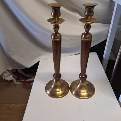 2 antikke høye lysestaker