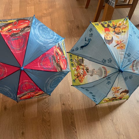 Paw Patrol barneparaply med flerfarget mønster. Paraplyen har karakterer fra Paw Patrol og er designet for barn.