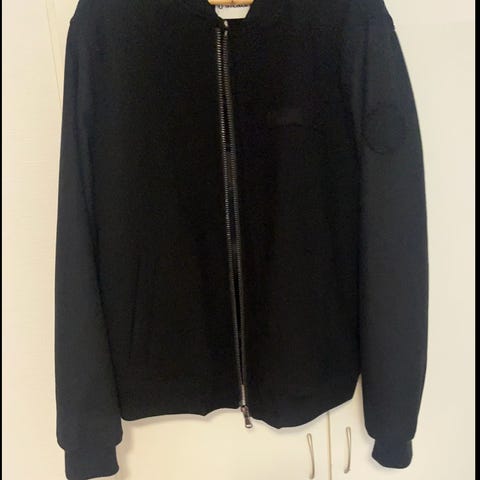 Burberry jakke i størrelse M, laget av bomull. Jakken er svart og designet for menn. Den har glidelåslukking og lommer med glidelås.
