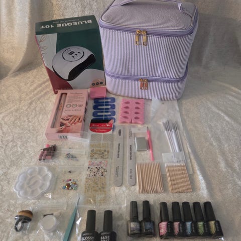 Nagelprodukter sett med gel-lakk og tilbehør