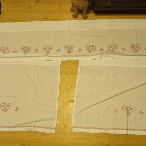 Retro gardiner i kvalitetsstoff. To lengder med rynkebånd. De er 160 lange men bør legges opp, se bilde 3. Regner med de er ca 150-155 lange når de blir lagt opp.