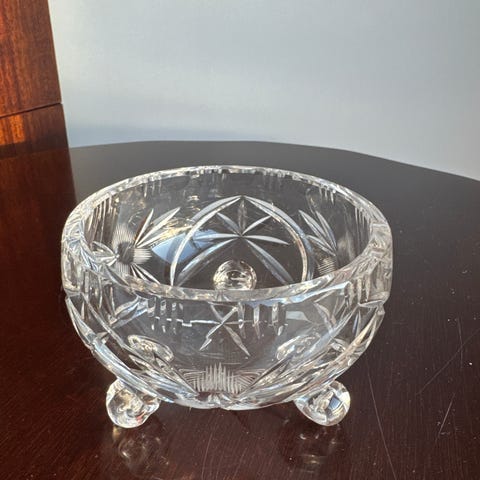 Smørklokken har et dekorativt slipt mønster med god tyngde og flott glans. Passer perfekt på frokost- eller middagsbordet, og er også fin som dekor i vitrineskap.