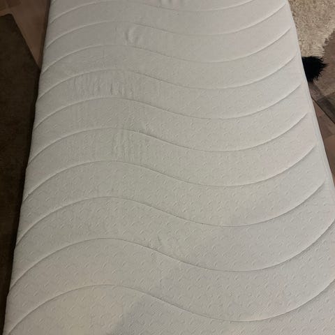Plast kanten under senga har løsnet seg. Kan fikses (var ikke så viktig for oss, og heller ikke synlig, så jeg har ikke prøvd det). Se bilder.