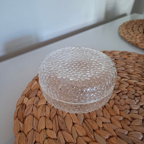 Skrin med lokk og en skål i brunhvit.