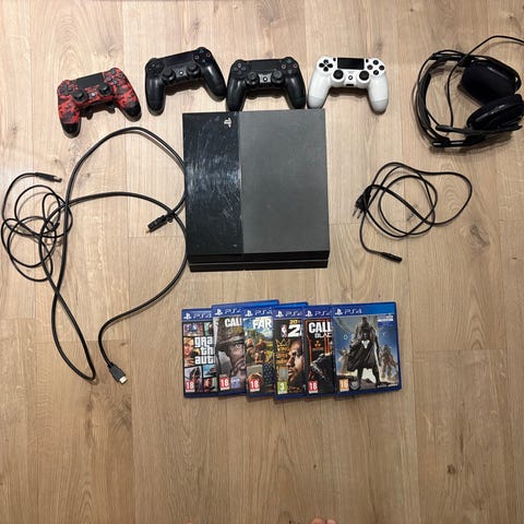 Pent brukt Sony Playstation 4 spillkonsoll selges. Inkluderer to trådløse kontrollere i hvit farge.Disk eject knappen fungerer ikke så disken må tas ut manuelt,Ellers så fungerer den som den skal.Kan sendes mot forskuddsbetaling