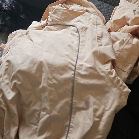 Kjempefin lilla utedress fra Stormberg. Str XS, god i str. Ca 170 cm lang, ca 85 cm fra skrittet og opp til halsen. Refleksdetaljer. Innstramming i livet.