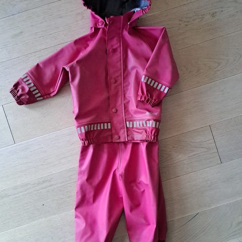 Pent brukt regnsett i str 92. Er brukt som ekstrasett hjemme, derfor lite brukt. Tilnærmet ingen bruksmerker, strikk under fotene er intakt.