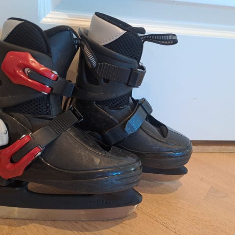 Oxelo justerbare barneskøyter i god stand. Størrelse 32-35. Må si jeg opplever selv at størrelse 32-34 hadde vært mer korrekt å si:)