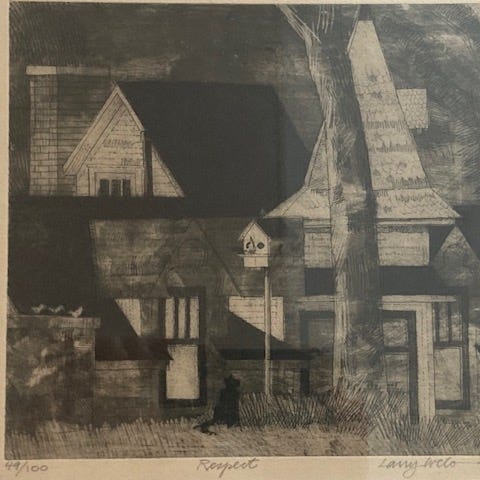Litografi (etsing/koldnål?) Motivet måler 11 x 14 cm. Selges med passepartout