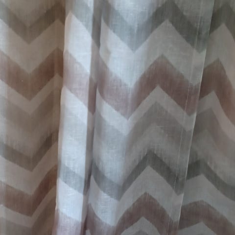 Pent brukte gardiner fra Kid, to lengder på 140×210. Rynkebånd.