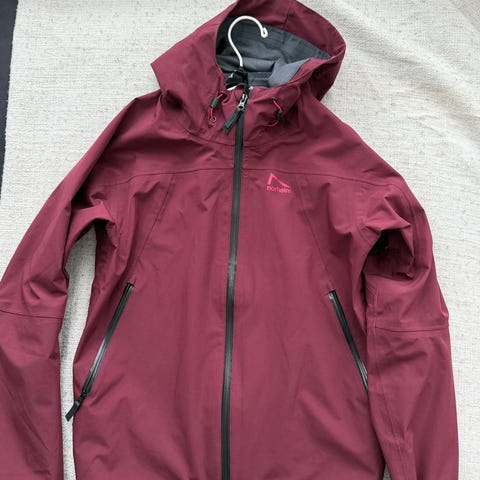Godt brukt, men fortsatt mye bruk igjen. En liten flekk i front + noe misfarging rundt håndledd, strikk og glidelåser under armene - alle avbildet. Strikken i hetta er noe sliten, men fungerer.