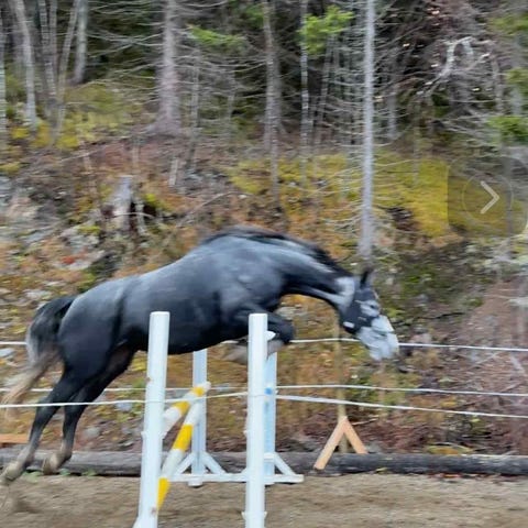 Selges komplett med utstyr som dressursal, sprangsal, dekken, seletøy m.m