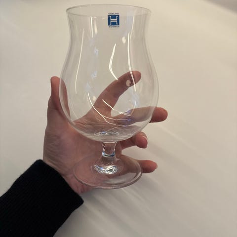 Hadeland Glassverk glass i klart glass. Glasset har en høyde som passer til servering av ulike drikker. Designet med stilren form og fotstøtte.