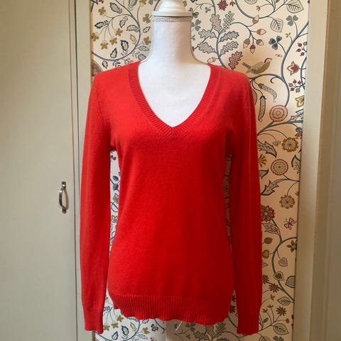 Klassisk lekker genser i 100% kashmir fra Italia. Jeg er M/strl 40 så den føles litt snau. Vil si den er mer en strl 38.
