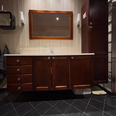 To brede 50cm skuffer og steinplate med ferdig hull til blandebatteri.