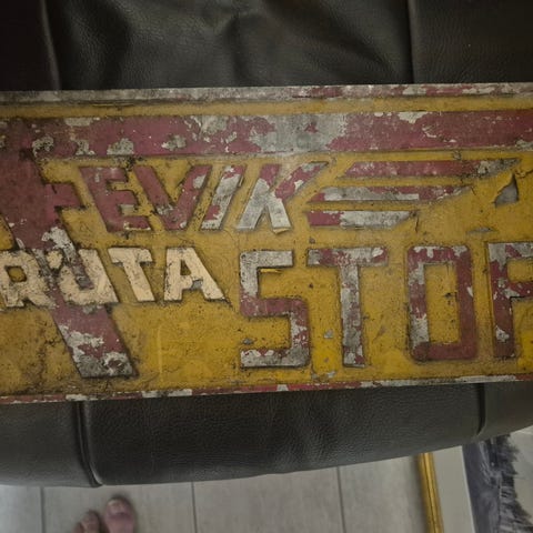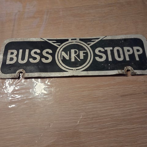 Gammel type bussholdeplass skilt. Tosidig skilt i aluminum.