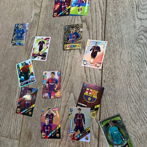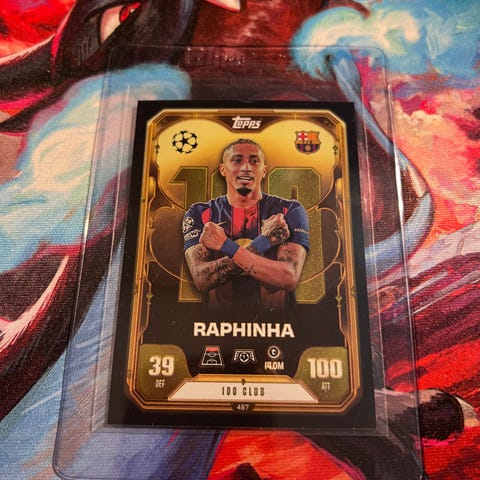 Panini Match Attax Hall of Fame Lionel Messi fotballkort med bilde av Lionel Messi i FC Barcelona-drakt. Kortet har gullfarget design og inneholder informasjon om Messis karriere i UEFA Champions League (UCL). Kortet er en del av en samling fra 2022-sesongen. Den er i nesten perfekt tilstand som normalt kan koste opp til 2000 kr men eg selger begge korta for 1299