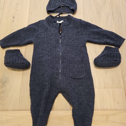 Selger pent brukt sett fra Polarn O. Pyret i mørkeblå. Setter sette består av bukse, jakke og matchende lue.