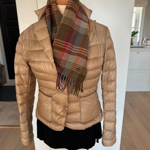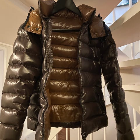 Moncler lett dunjakke i grå/ brun farge. Veldig pent brukt og ser nesten ny ut. Monclear str 2