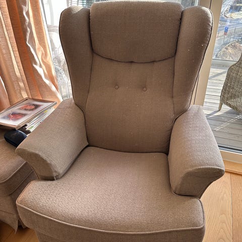 Poeng lenestol. Godt brukt. Går an å male og kjøpe ny pute på IKEA. Hentes på Bønes.
