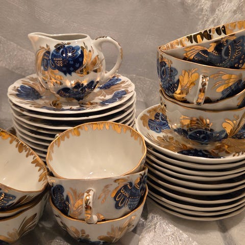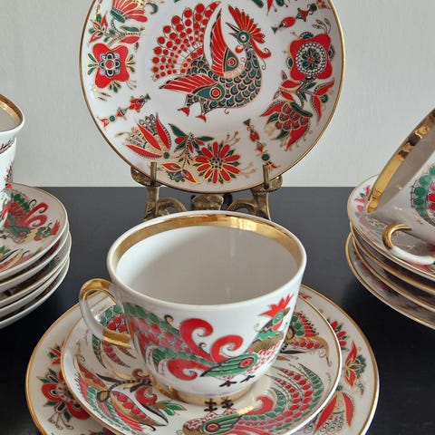 RUSSISKE LOMONOSOV SERVISE - ROSE PINK - 24KARAT GULLDEKOR.