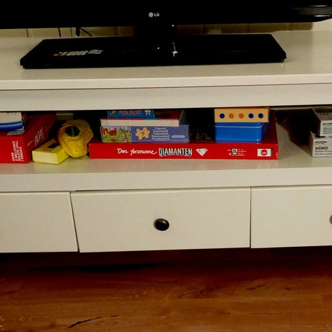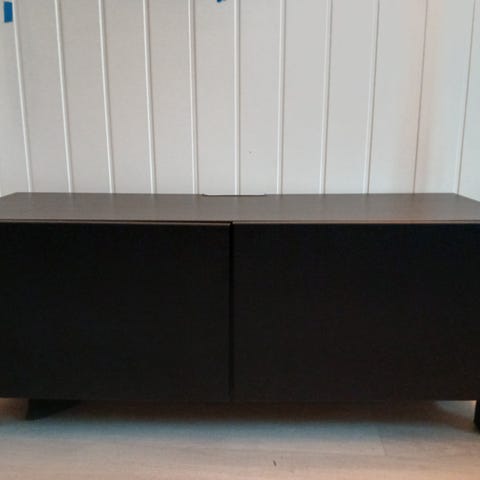 Tv benk med glassdører og hjul