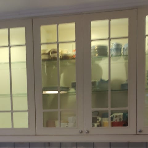 Kjøkkeninnredning hvit med glassdører