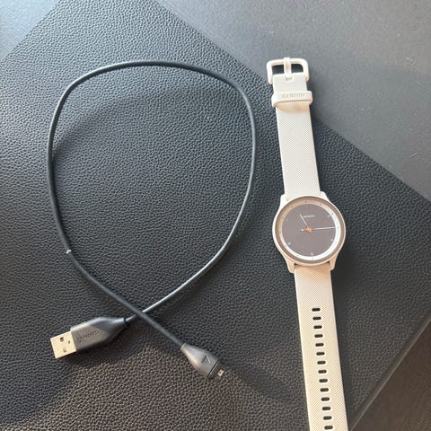 Selger denne smart- og treningsklokken da jeg fikk ny til jul. Denne klokken er godt brukt, men fungerer fortsatt veldig bra! Er synlige bruksmerker, som vist på bildet. Rem kan kjøpes ny og byttes.
