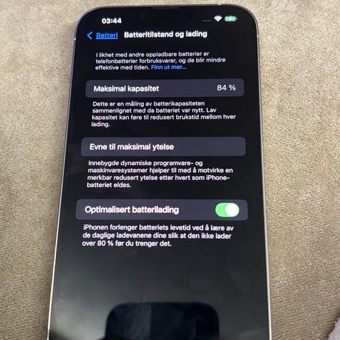 Apple iPhone 13 Pro med 128 GB lagringskapasitet. Telefonen har et grønt fargedesign og er utstyrt med avanserte kamerafunksjoner og en kraftig prosessor. Passer for brukere som ønsker en mobil med høy ytelse og god lagringsplass. Noen bruksmerker. 84 % batterikapasitet.