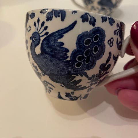 Noen av de små dekorative «paljettene» har falt av på enkelte glass. Dette er tatt hensyn til i prisen. Ellers er glassene hele, uten sprekker eller nagg.