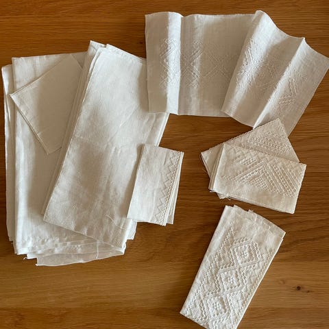Nostalgiske pyntelommetørklær til dressjakke. De er i bomull og papp,noe som var vanlig før. De brettes så de passer lommen
