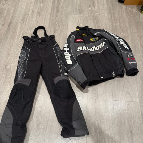 FXR Racing vinterdress i gul og svart farge, designet for beskyttelse og komfort ved kalde forhold. Inkluderer matchende hjelm med ventilasjonssystem og sikkerhetssertifisering (ECE R22-05). Dressen har hette og er laget for å gi god bevegelighet og isolasjon.
