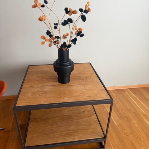 Stuebord med marmor lignende topp. Dette er ikke ekte marmor - så klart. 40x80cm, ca 43cm høyt. Noen få skrammer her og der, derav prisen.