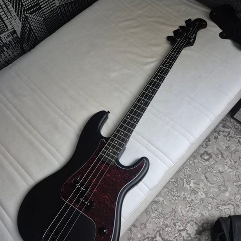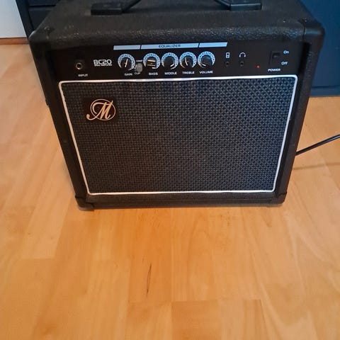 Harley Benton HB-80G bassforsterker med 80 watt effekt. Forsterkeren har flere kontrollknapper for justering av lyd, inkludert equalizer og gain.