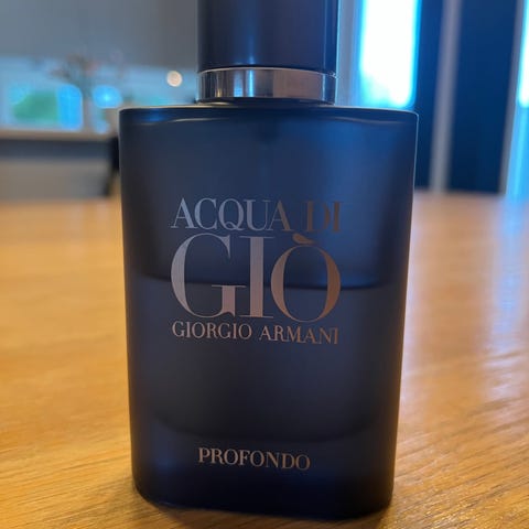 Giorgio Armani Acqua di Gio parfyme med en flaske på 125 ml. Produktet har en gjennomsiktig flaske med brun kork. Parfymen er designet for menn.