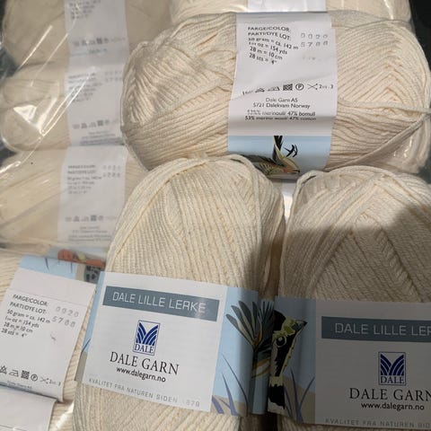 Dale Garn Lille Lærke garn i lys rosa farge. Hver nøste veier 50 gram og inneholder ca. 142 meter garn. Materialet består av 53% merinoull, 47% bomull. Garnet egner seg til ulike strikke- og hekleprosjekter.