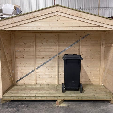 Søppelskur til 4 dunker ,bunn impregnert tarrasebord 28x120 mål L265 B83 H 195 .Transporthjelp til 15 km gratis