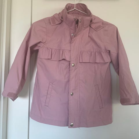 Kjempefin jakke til jente i gammelrosa farge. Jakken er en enkel tynn vårjakke. Fint brukt, men ser ut som det er noen små flekker på jakken.