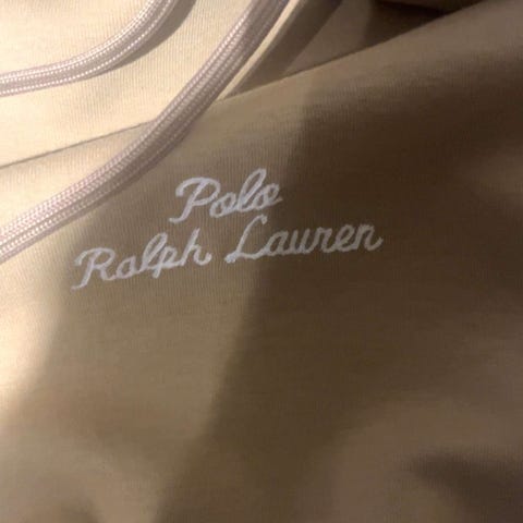 En meget fin genser fra polo ralph lauren i fargen beige og størrelsen S, det er to små hull under armen på hver side, som vist på bilde nr. 4 og 5, dette kan fikses veldig enkelt og er ikke synlig siden hullene ligger der det gjør. Utenom disse to hullene er genseren i perfekt tilstand.