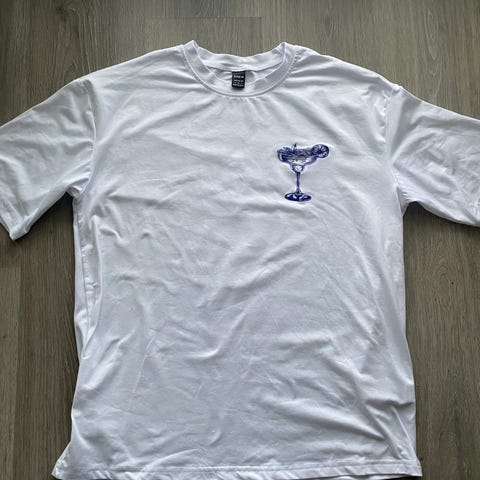 Monki T-skjorte i størrelse XS, laget av bomull. T-skjorten er lilla med en sushi bit på.