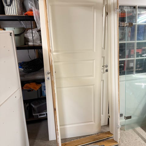 Eldre innedør selges grunnet oppusing . Har 3 stk , mål står på bilde . Pris 300.- pr stk , kan diskuteres . Har bruksmerker , godt brukt .