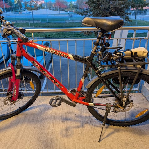 M sykkel fra Schwinn Frontier. Hatt i boden i to år og ikke brukt, fikk av familie. Dekkene må pumpes da den har ikke vært i bruk i det hele tatt.