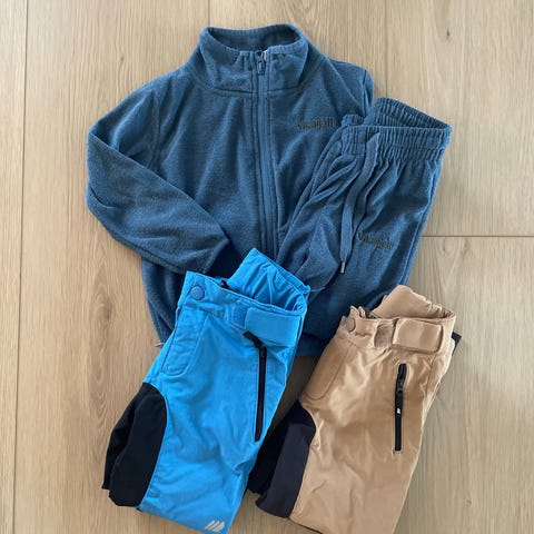 Noe av klærne er helt nye, kun tatt av lappen. Noen er brukte, og de tynne buksene er godt brukte, men uten noen hull (som jeg har sett). De var veldig gode for en aktiv gutt om våren/sommeren, når andre bukser ofte er alt for varme.